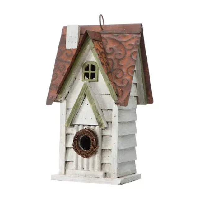 Glitzhome® Tall Distressed Green Wood Bird House