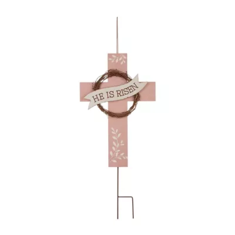 Set over a cross with natural rattan and a printed "HE IS RISEN" text lend a festive touch. Come with an h-shaped base, this stake can be easily placed anywhere in your garden.