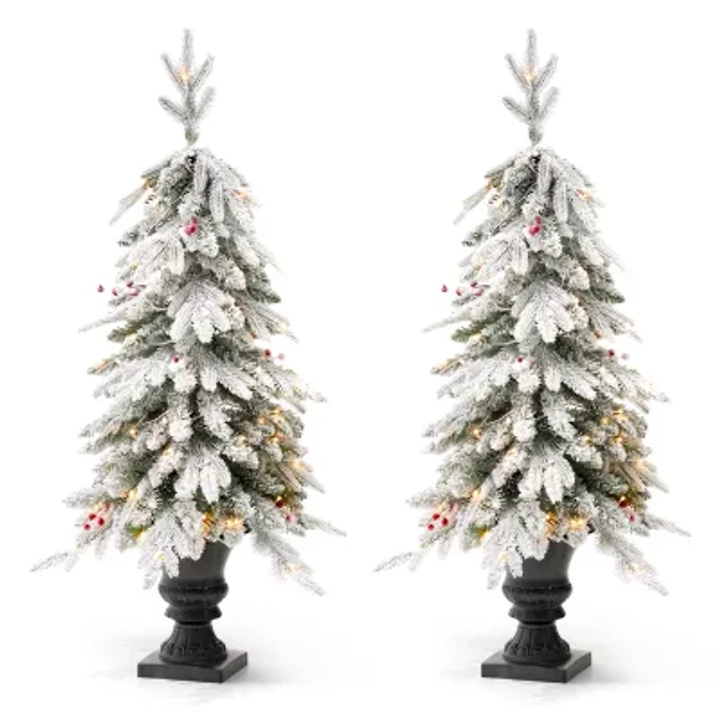 Glitzhome 4 Ft 2pc Pre-Lit Porch Fir Christmas Tree