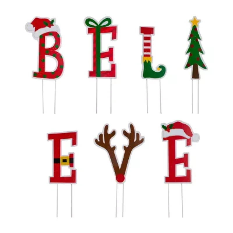 Ideal for yards and gardens both big and small, this set of "believe"- yard stakes allow you to space out your faithful for the life and future. Each letter featured Christmas icons and colors, stylished designed and valuable textured.