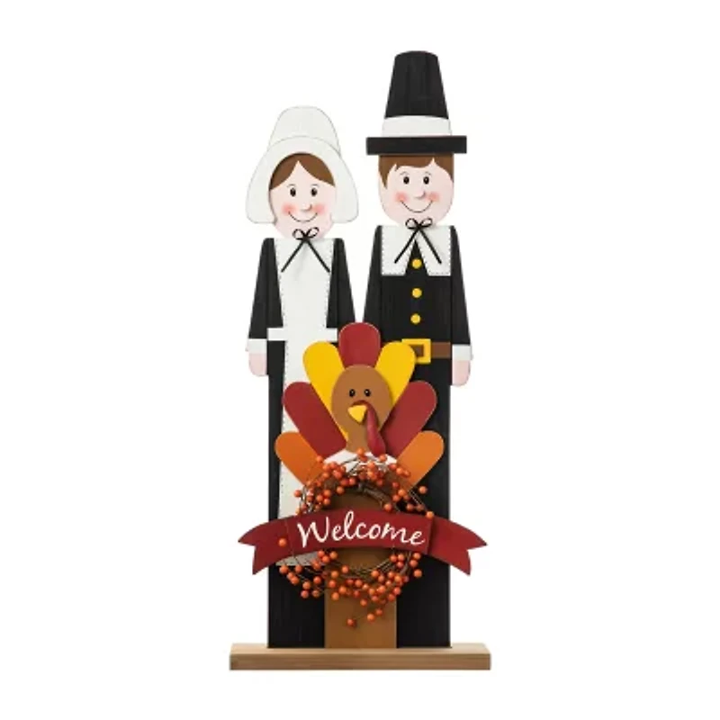 Glitzhome Harvest Wooden Pilgrim Couple Thanksgiving Porch Sign in Chattanooga, TN