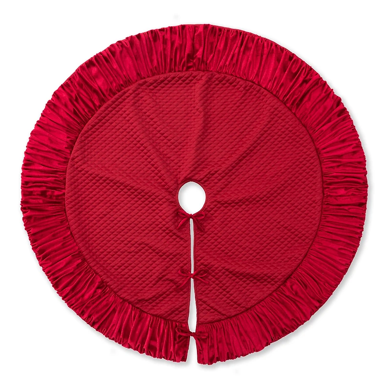 This deluxe Christmas tree skirt is designed to be placed around the bottom of your Christmas tree as a stylish protector against tree debris and as a mat for presents.Details:Available in multiple colors and sizesMade of 100% polyesterVelvet ruffledFront: diamond weave fabric with velvet ruffledBack: nylexCare instructions: Machine wash cold on gentle cycleNo assembly required
