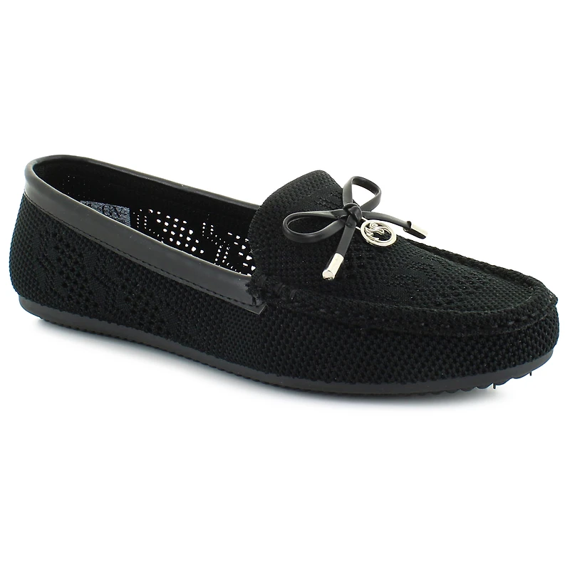 Step into casual elegance with the Gloria Vanderbilt Rita moc flats. Featuring a knitted fabric upper, these flats offer breathability and style for everyday wear. The slip-on style ensures easy on and off, while the front bow with charm adds a touch of charm and sophistication. Enjoy all-day comfort with the cushioned insole, providing support and cushioning with each step. Complete with a traction outsole, the Rita flats offer stability and grip for versatile wear.