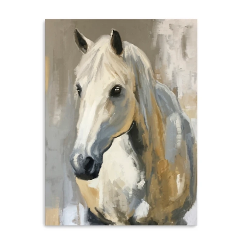 The Glorious Mare Canvas Art Print captures the ethereal beauty of a majestic horse with an abstract background in shades of beige, gray, and gold. Perfect for a modern farmhouse. Overall dimensions Width: 30 in. Depth: 1.25 in. Height: 40 in. Giclee printed on stretched canvas Wrapped edges complete the look Features a horse subject Hues of white, gray, beige, and gold Artist: Aeious Plata Weight: 3.3 lbs. Hangs from back-mounted hardware Care: Dust with a soft, dry cloth. This item is available at Kirklands.com only, not available in stores. Please note: this item cannot be shipped to APO/FPO addresses.