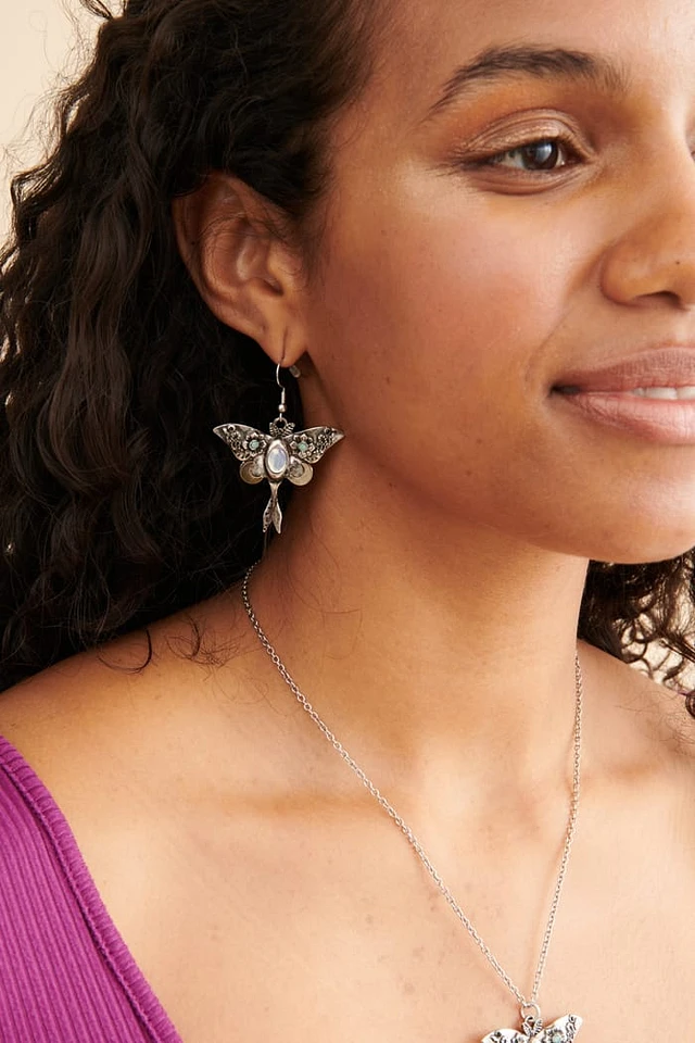 Glow Celestial - Shop Opalite Silver Celestial Moth Earrings