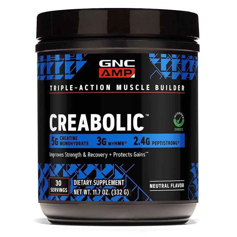 Creabolic™ - 30 servings improve gains & workout performance: gnc amp creabolic™ is a first-of-its-kind muscle-building combination of creatine monohydrate with an hmb supplement and peptistrong® protein hydrolysate for protection against muscle breakdown and fatigue^. 2x more strength gains: creabolic’s 5g dose of creatine monohydrate is clinically proven to increase strength, helping add 11 lbs. More to your max bench press and 21 lbs. To your squat pr^ °. Faster results with creatine: when taken before exercise, creabolic’s hmb maximizes endurance efficiency, helps muscle recovery, and activates a key driver of muscle protein synthesis. Gain more reps & come back stronger: creabolic’s 2. 4g dose of peptistrong® s increased muscular endurance and improved recovery of muscle strength post-exercise. Complete muscle optimization in 1 formula: creabolic™ delivers an innovative formula with three clinically dosed ingredients chosen to maximize strength, size, and performance while actively defending against muscle breakdown. 3-in-1 creatine formula for value & convenience: when purchased individually, the ingredients in creabolic™ can cost over $100—making creabolic™ an incredible value at only $49. 99 and more convenient than a complicated stack. Trust third-party tested performance supplements: creabolic™ is informed choice certified, gluten free, porcine free, and contains no milk, no soy, no artificial colors, and no added sugars. 5g creatine monohydrate 30 servings. Gnc amp creabolic - unflavored (30 servings)