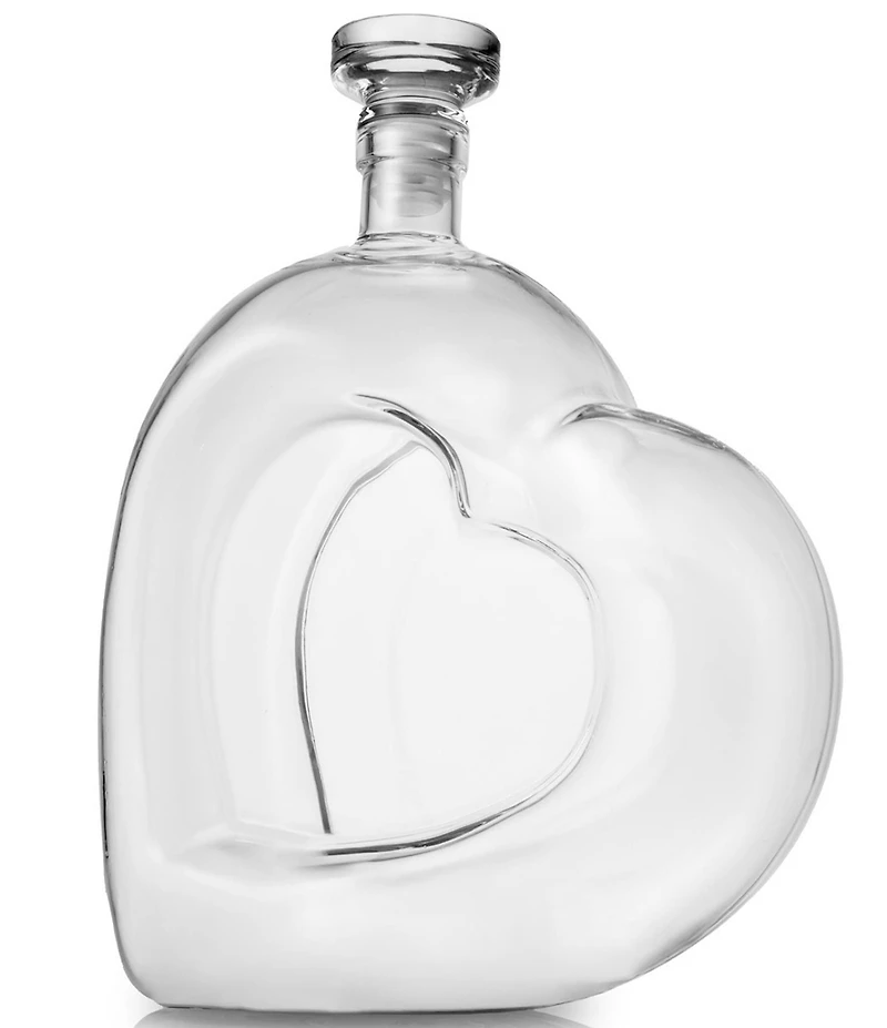 From Godinger, the Amore Crystal Heart Decanter, 9.4" features: Blown unleaded crystal  Sealed stopper  Hand wash   Approx. 7.25" L x 3.43" W x 9.37" H  Approx. capacity 44-oz  Imported.