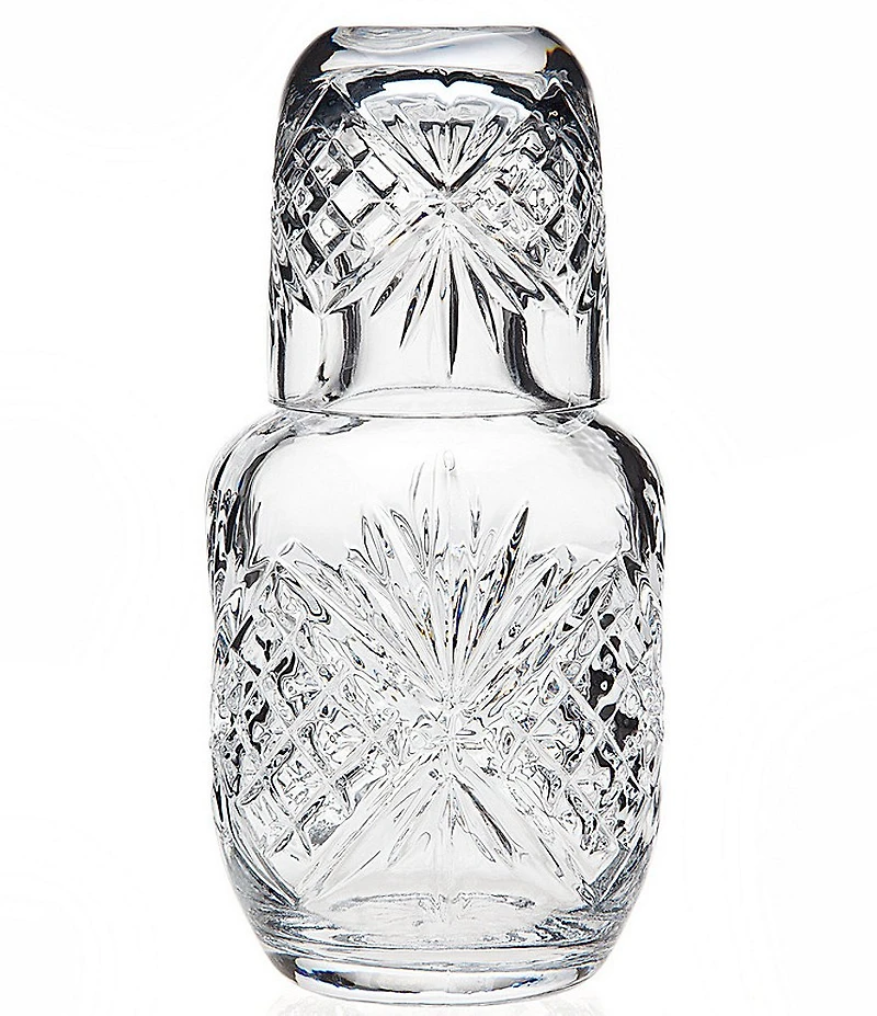 This beautifully etched carafe makes for a handy, thirst-quenching bedside companion. Complete with a matching cup. From Godinger, this carafe set features: Dublin Collection Carafe and Drinking Glass set Non-lead crystal Approx. 3.53"dia x 7.32"h Dishwasher Safe Imported.