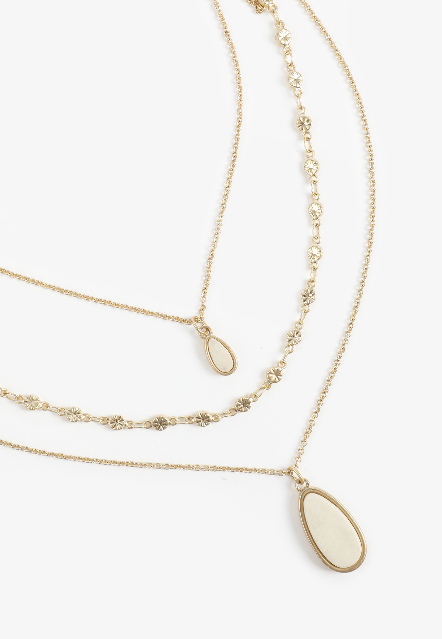Gold And Cream Oval Stone Pendant Layered Necklace