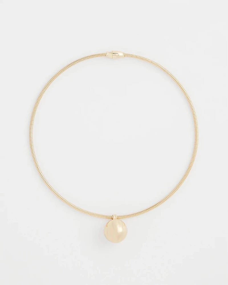 You'll adore this wear everywhere Gold Bead Collar Necklace. Featuring an easy to wear magnetic closure and sleek gold bead pendant.