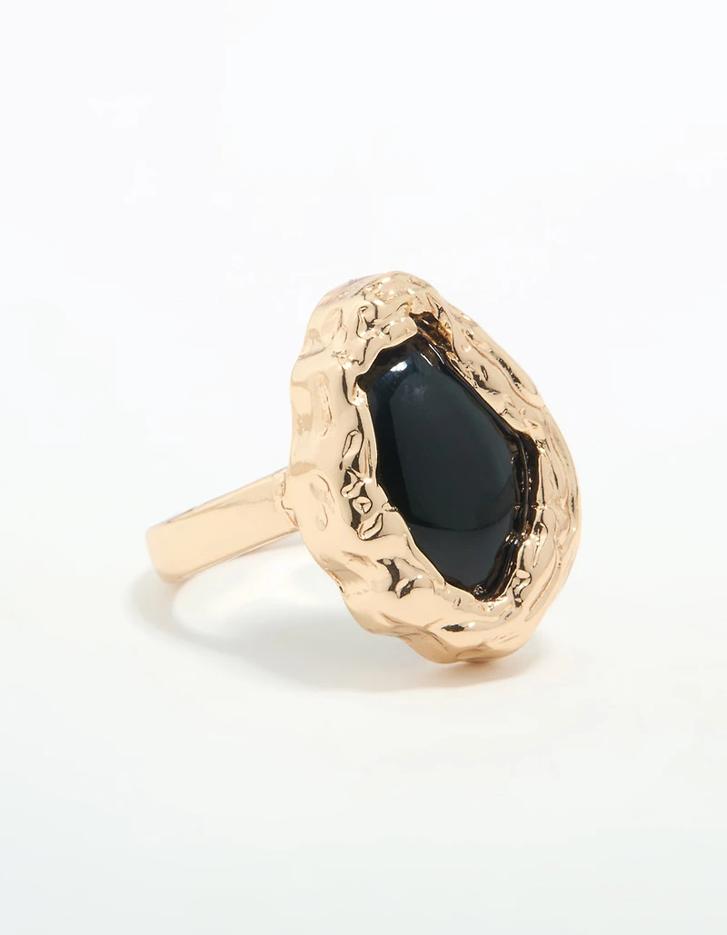 Gold Black Stone Molten Oval Ring