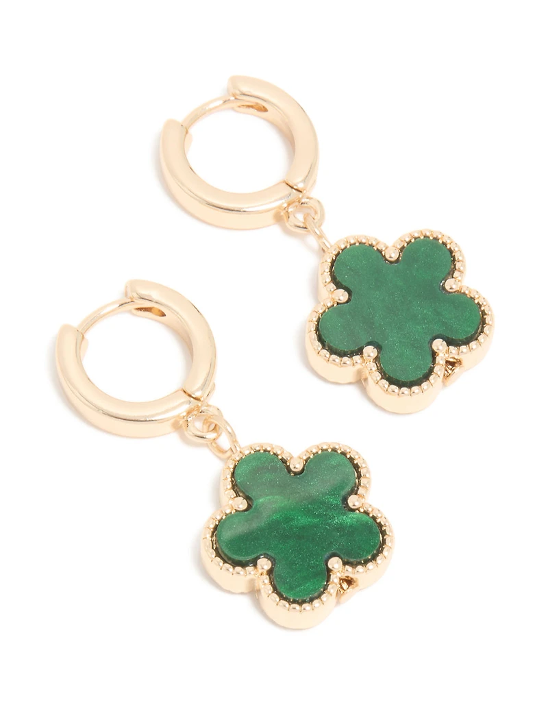 Gold Green Flower Drop Huggie Earrings in Chattanooga, TN