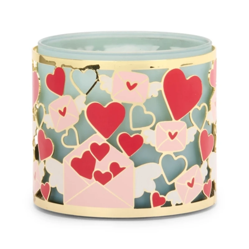 Our Gold Hearts 3-Wick Jar Candle Holder will make your heart skip a beat! Showcase any one of our triple wick jar candles with this lovely Valentine decoration. Holder measures 3.6H x 4.25 in. in diameter Crafted of 100% iron Features heart and envelope cutout designs Hues of gold, pink, and red Accommodates one (1) triple wick jar candle Care: Dust with a soft, dry cloth. Contact your local Kirkland's store for availability. Quantities and selection may vary by location.
