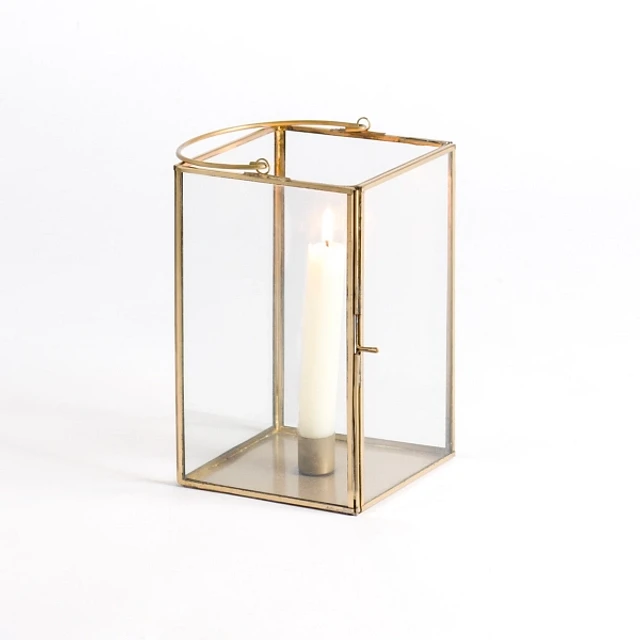 16" Gold Metal Candle Lantern with Pebbled Glass