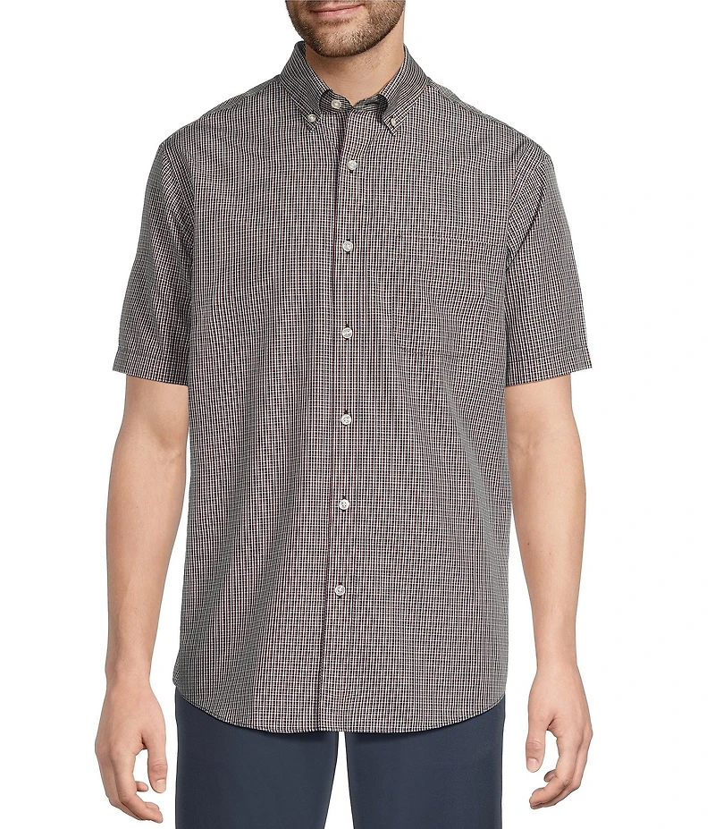 Gold Label Roundtree & Yorke Big & Tall Full Fit Non-Iron Short Sleeve Mini Plaid Poplin Sport Shirt