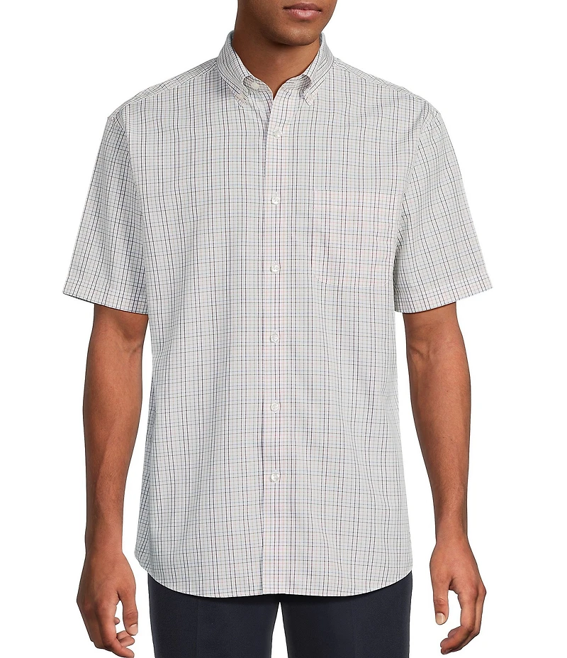 Gold Label Roundtree & Yorke Big & Tall Full Fit Non-Iron Short Sleeve Small Plaid Poplin Sport Shirt