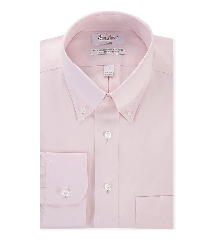From Gold Label Roundtree & Yorke, this dress shirt features: Eco-wash fabric Advanced generation non-iron technology; prohibits shrinkage and helps lengthen the performance of the shirt for longer wearability Full fit Button-down collar Long sleeves with single-button cuffs Exact sleeve lengths for the perfect fit Button-front closure Pocket detail EZ wash finish on the cuffs and collar releases stains in washer Cotton pinpoint Machine wash/tumble dry Imported.