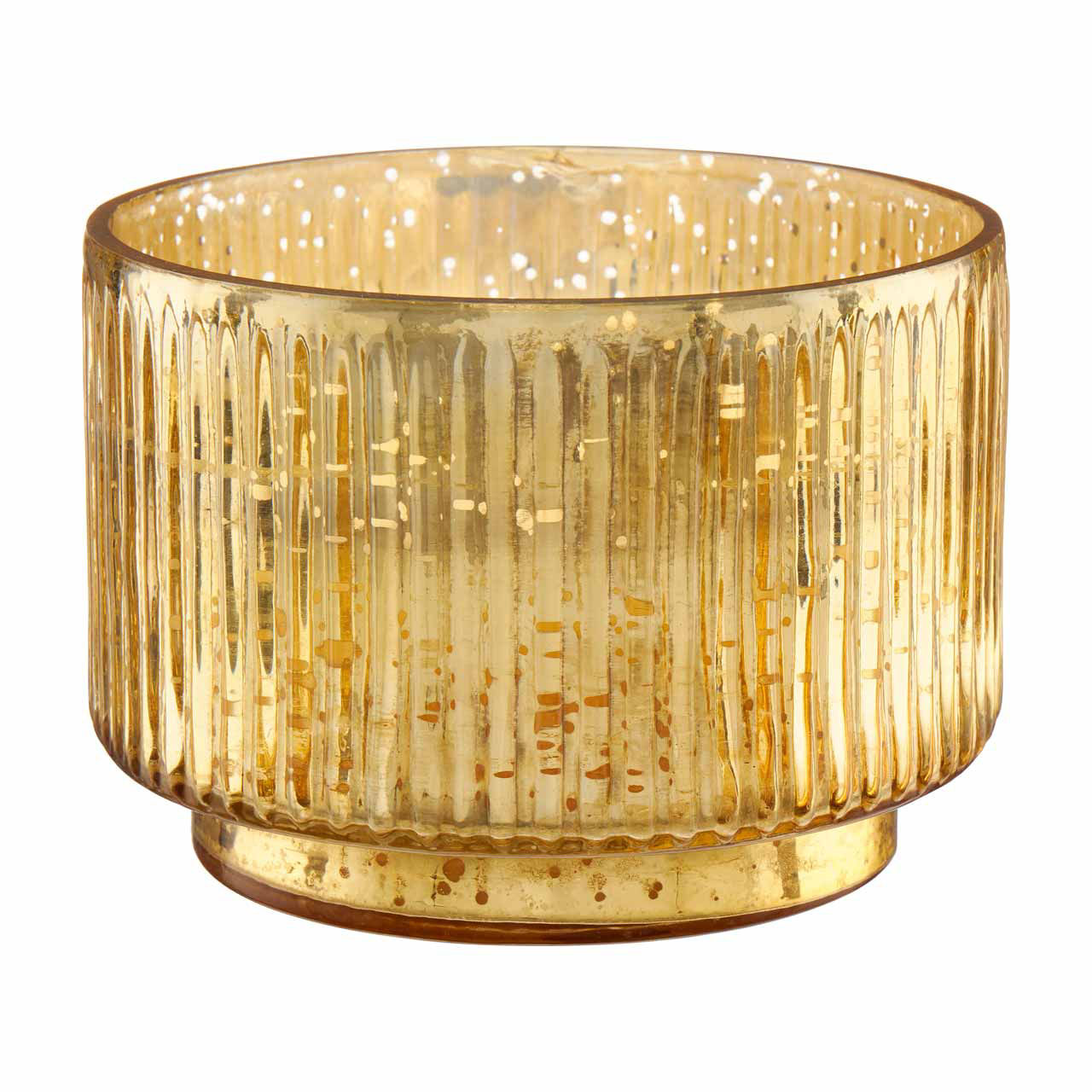 Illuminate your space with a touch of timeless elegance using our Gold Mercury Candle. This stunning candle is housed in a beautifully crafted glass vessel with a luxurious gold mercury finish, making it an exquisite addition to any home decor. The candle holder features an intricate ribbed design that catches and reflects light, creating a warm and inviting glow. The gold mercury finish adds a touch of vintage charm, perfect for adding sophistication to your living room, dining area, or bedroom. Whether you're hosting a special event or simply enjoying a quiet evening at home, this candle will create the perfect ambiance. The Gold Mercury Candle is the ideal size for tabletop displays, mantelpieces, or as a centerpiece for your dining table. The high-quality wax ensures a clean and even burn, while the subtle, soothing fragrance enhances the overall experience. This candle also makes a thoughtful gift for friends and loved ones, adding a touch of luxury to any occasion. Bring a warm, golden glow to your home with the Gold Mercury Candle from pOpshelf, and let its beautiful design and inviting light elevate your space.