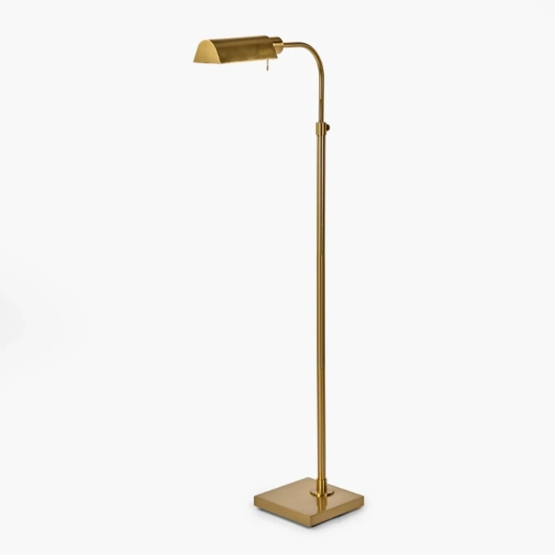 This Gold Metal Adjustable Task Floor Lamp combines functionality with sophisticated style. Its adjustable arm and angled shade make it perfect for reading nooks, home offices, or cozy living areas. Total lamp measures 55H in. Crafted of metal Gold finish Adjustable design Gold metal shade Shade measures 11L x 3W x 2.5H in. Socket accommodates a Type G E26 40W bulb Switch type: On/off Includes a clear, 60 in. plug-in cord Weight: 12 lbs. Care: Dust with a soft, dry cloth. Do not exceed specified wattage. Contact your local Kirkland's store for availability. Quantities and selection may vary by location.