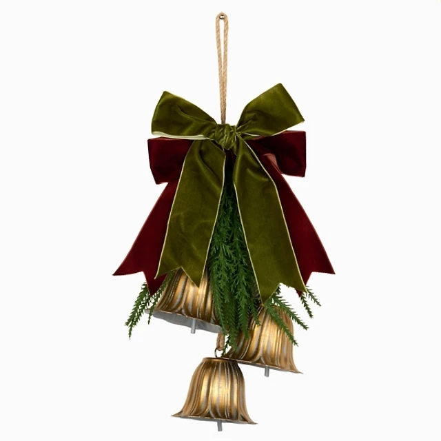 Hello Honey® 16" Antique Gold Hanging Metal Bells with Green Rope Hanger
