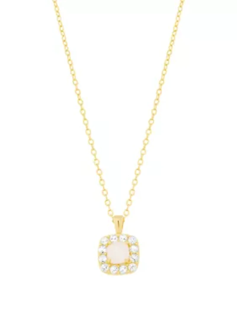 Gold Over Sterling Silver Simulated Opal and White Topaz Square Halo Pendant Necklace in Chattanooga, TN
