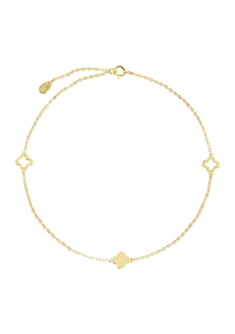 Gold Over Sterling Silver Triple Clover Chain Anklet