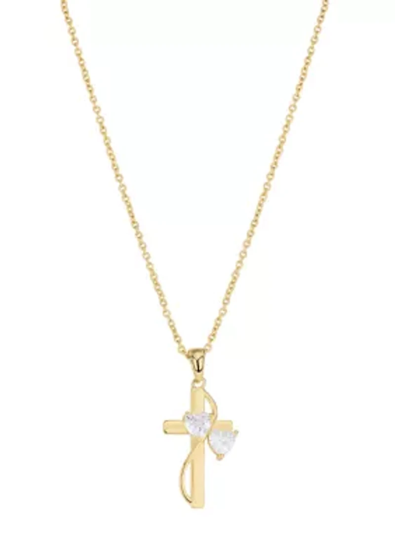 Gold Plated Cubic Zirconia Heart Cross Pendant Necklace in Chattanooga, TN