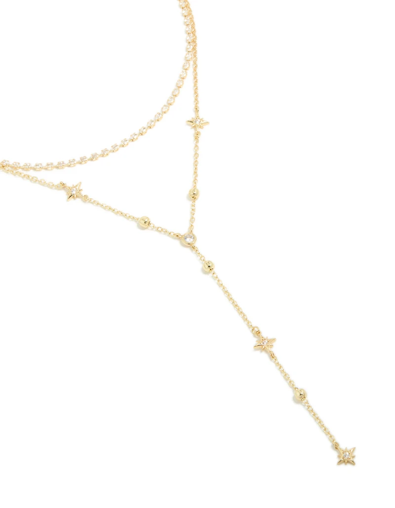 Gold Plated Cubic Zirconia Star & Tennis Layered Y-Necklace