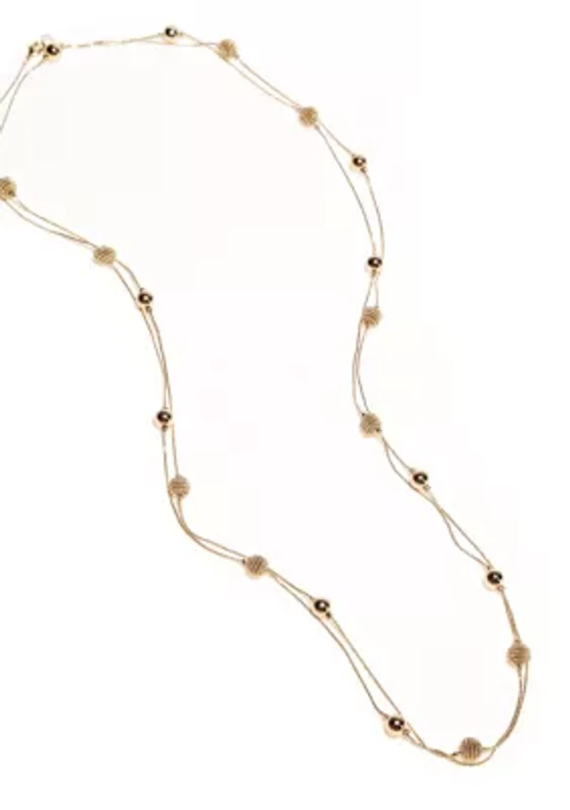 Beehive and polished bead stations join together on a gold-plated fashion chain to create this lovely strand necklace from Kim Rogers®. Lobster clasp Polished finish Imported Belk Exclusive Product Specifications 72 in Length Material & Care Gold-tone metal Clean with a soft cloth