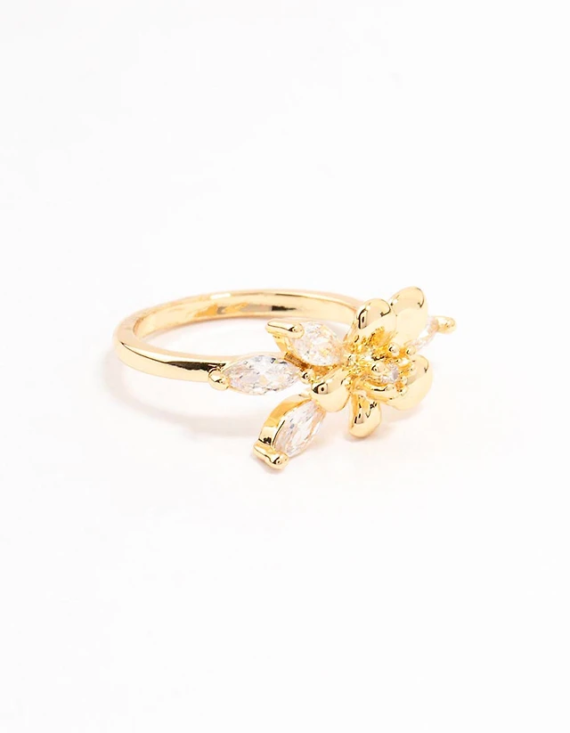 Gold Plated Fine Flower Cubic Zirconia Ring