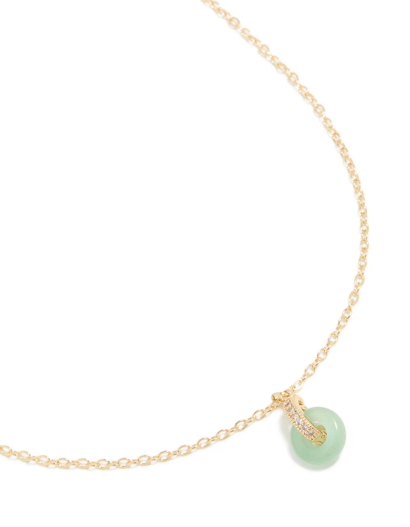 Gold Plated Green Aventurine Semi-Precious Cubic Zirconia Doughnut NecklaceGold Plated Green Aventurine Semi-Precious Cubic Zirconia Doughnut NecklaceGold Plated Green Aventurine Semi-Precious Cubic Zirconia Doughnut Necklace