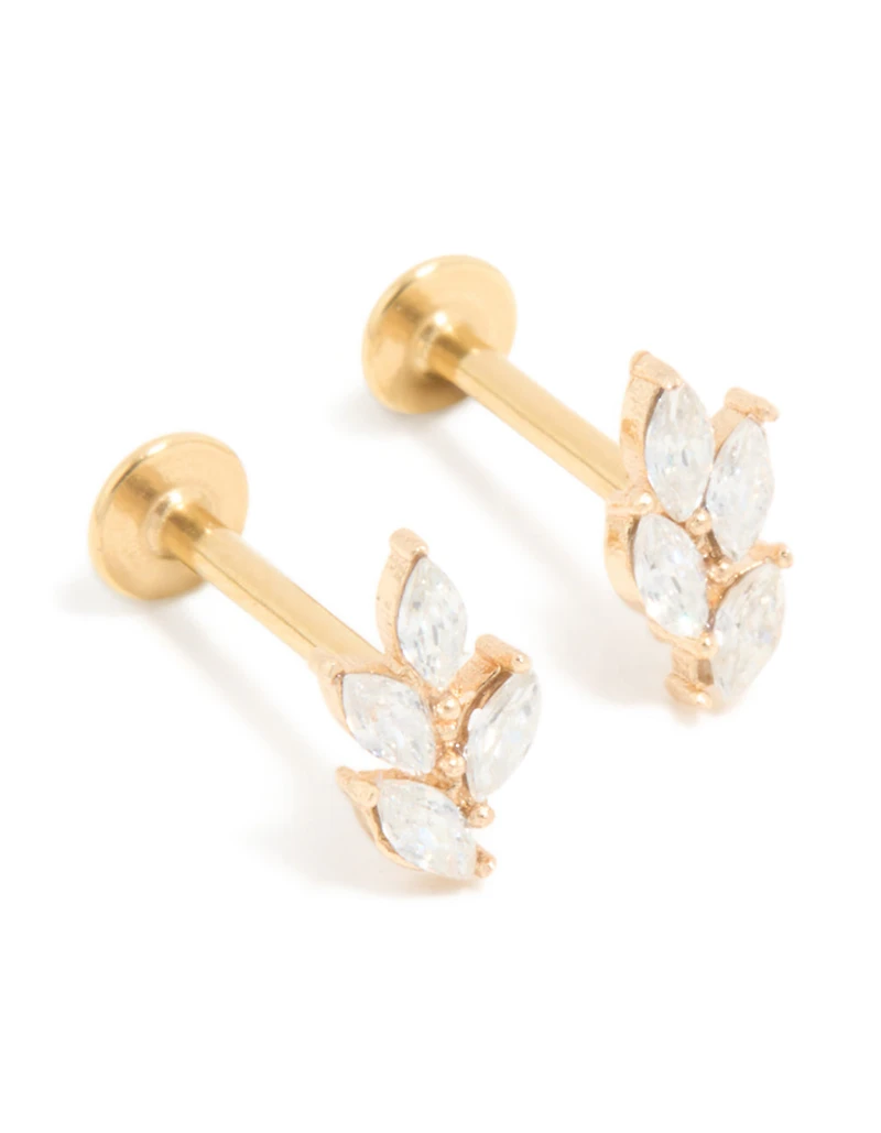 Gold Plated Surgical Steel Cubic Zirconia Mini Leaf Flat Back EarringsGold Plated Surgical Steel Cubic Zirconia Mini Leaf Flat Back EarringsGold Plated Surgical Steel Cubic Zirconia Mini Leaf Flat Back Earrings