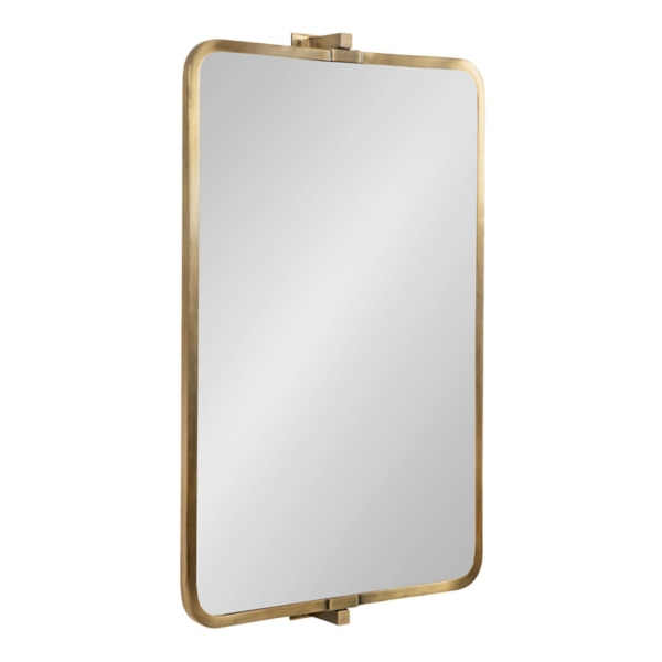 Decorate your modern home with our sophisticated and adjustable Gold Rectangle Pivot Wall Mirror! You'll love being able to position this mirror perfectly, whether you use it as a stunning vanity mirror or a decorative accent in the living room. Mirror measures 20L x 3.35W x 31.75H in. Frame crafted of metal Gold finish Rounded rectangle shape Features adjustable, pivoting brackets Weight: 13.54 lbs. Hangs from back-mounted hardware Care: Dust with a soft, dry cloth. To clean mirror, spray a small amount of glass cleaner onto a lint-free cloth and wipe clean. This item is available at Kirklands.com only, not available in stores. Please note: this item cannot be shipped to APO/FPO addresses. WARNING: Cancer and Reproductive Harm - For more information go to www.P65Warnings.ca.gov .