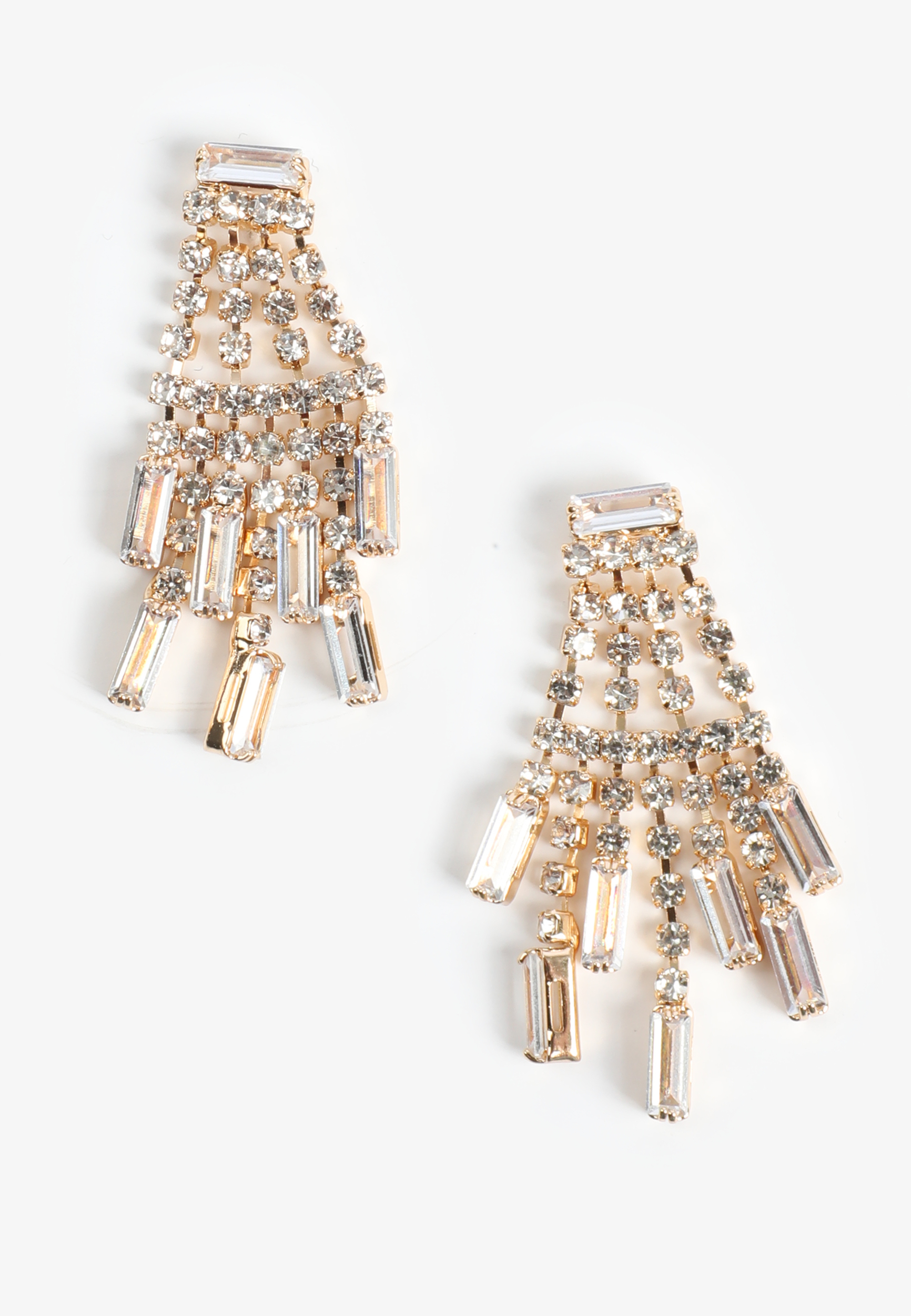 Gold Rhinestone Chandelier Drop Earrings