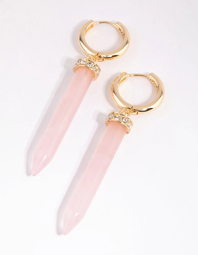 Rose Quartz & Diamante Huggie Hoop Earrings