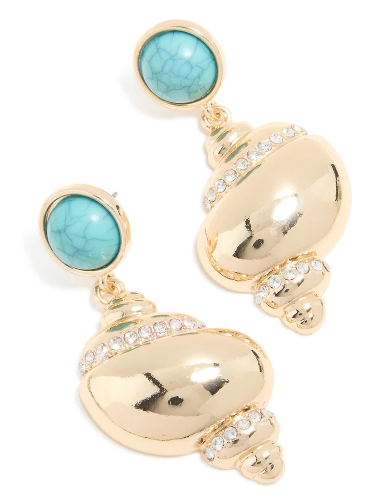 Gold Shell & Turquoise Stone Stud Drop EarringsGold Shell & Turquoise Stone Stud Drop EarringsGold Shell & Turquoise Stone Stud Drop Earrings