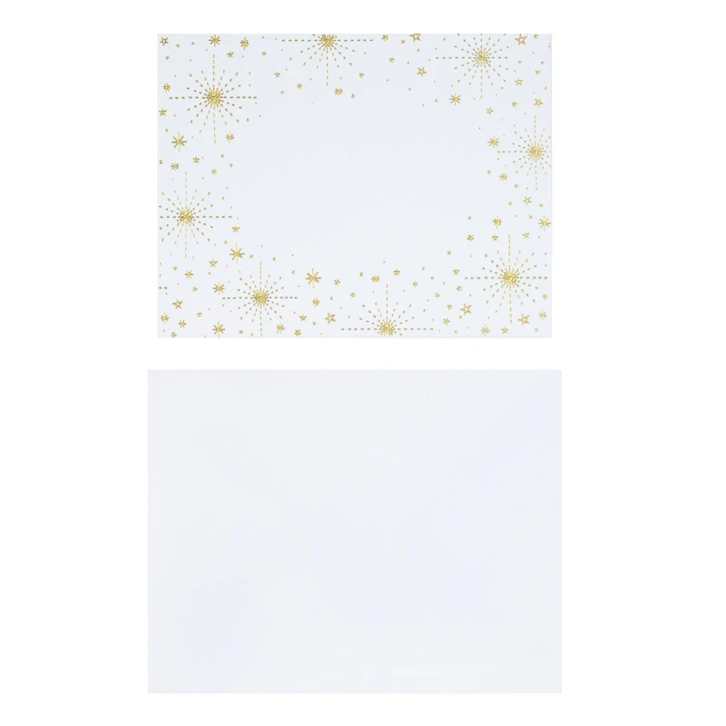 Send season's tidings—a yearly recap with a holiday family photo—and New Year's wishes to friends and loved ones using this card and envelope set. Featuring a gold foil snowflake design on the card cover, just add your stamps and an address and you're ready to send off your well wishes!DetailsGold and whiteA2 formatPaper and foilContents:24 cards: 4.25" x 5.5" (10.7cm x 13.9cm)24 envelopes: 4.5" x 5.75" (11.4cm x 14.6cm)