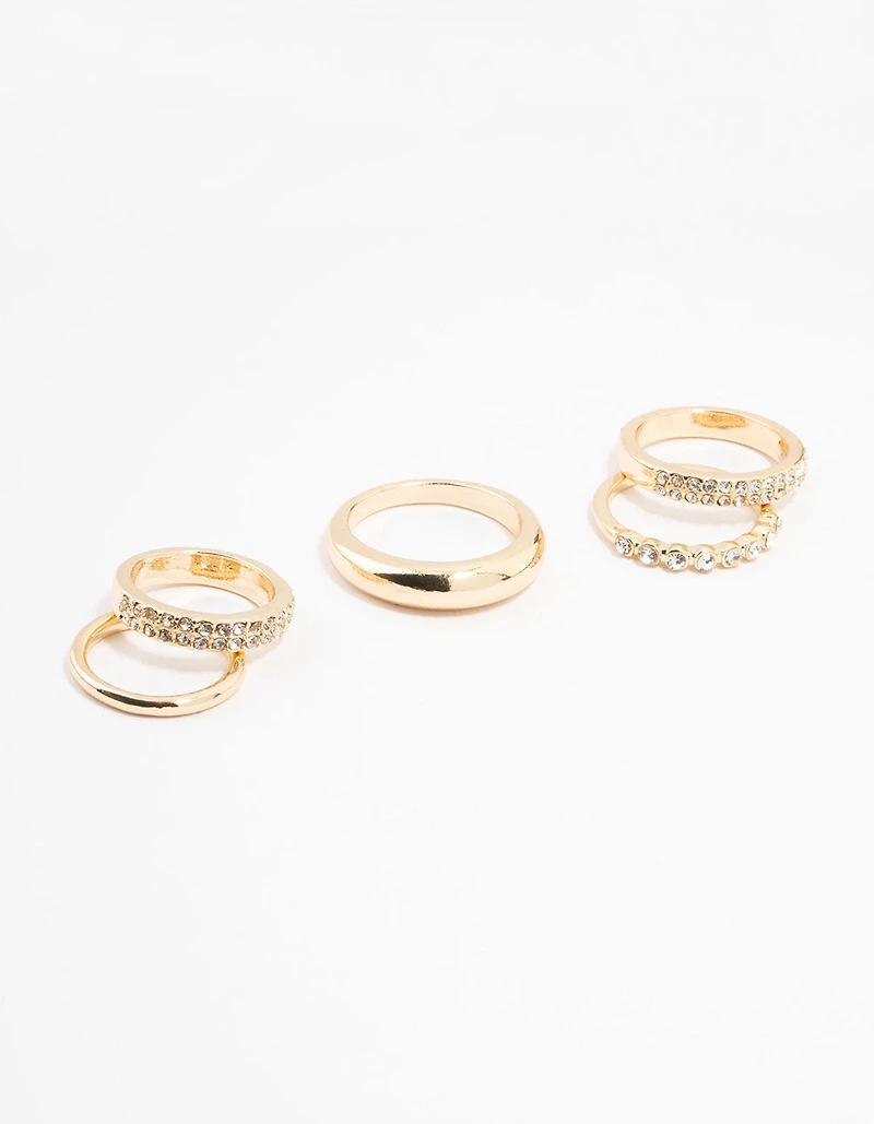 Gold Thick Diamante Band Rings 5-Pack in Chattanooga, TN