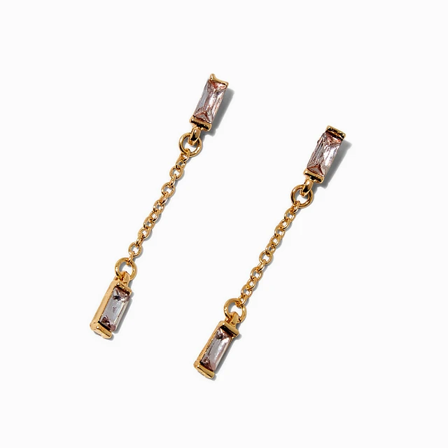 Gold-tone Baguette Chain Linear Drop Earrings