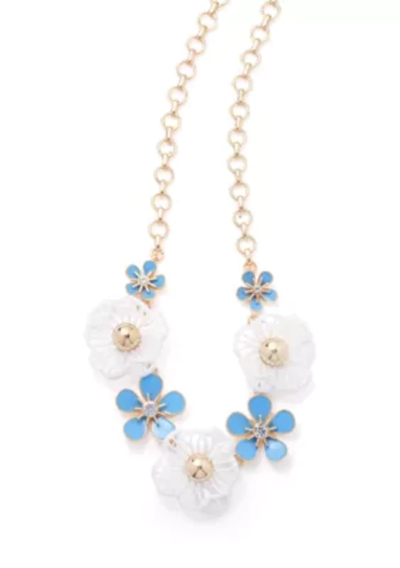 Gold Tone Blue Enamel Flower Frontal NecklaceGold Tone Blue Enamel Flower Frontal NecklaceGold Tone Blue Enamel Flower Frontal NecklaceGold Tone Blue Enamel Flower Frontal Necklace