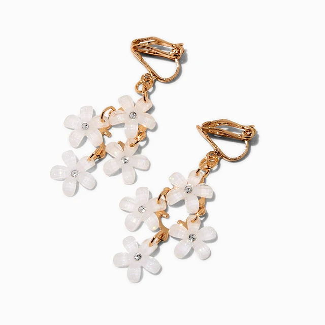 Gold-tone Chandelier Flower Clip-On Drop Earrings