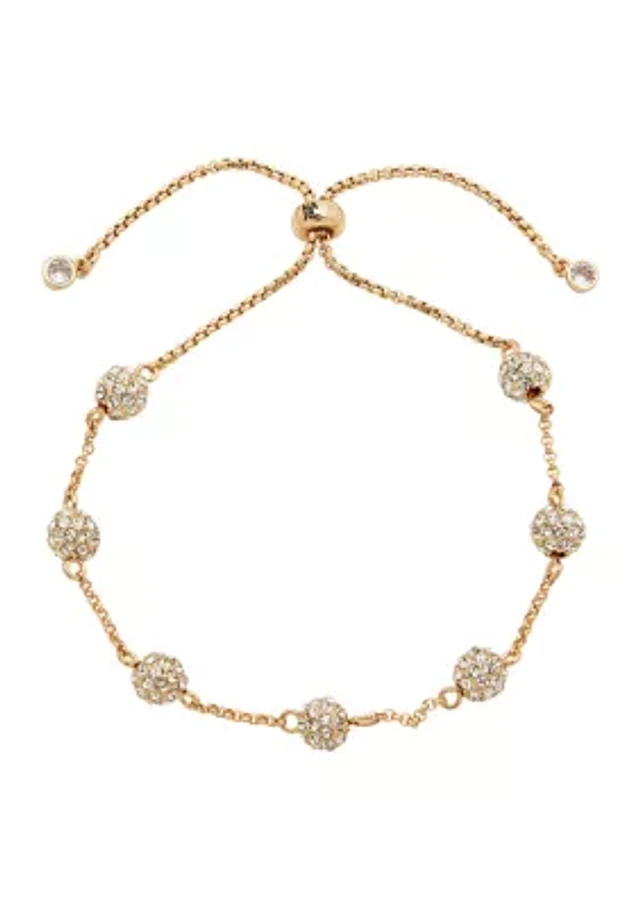 Gold Tone Crystal Pavé Sphere Slider Bracelet
