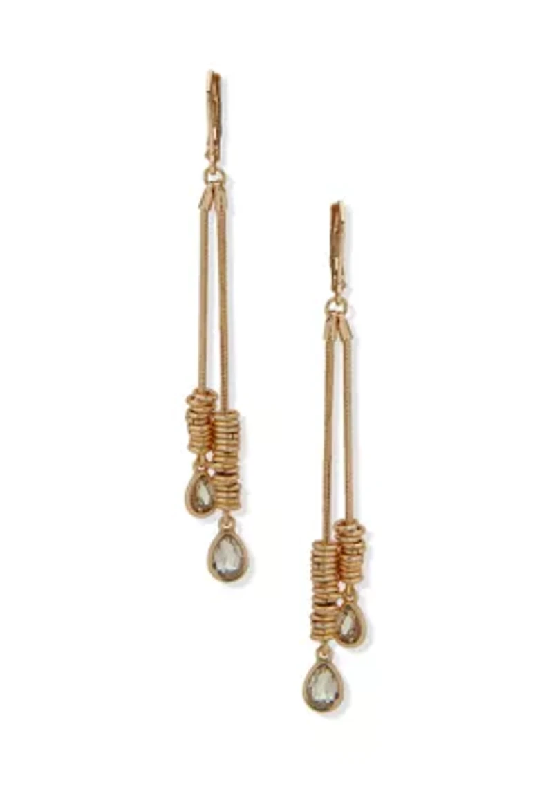 Gold Tone Crystal Ring Linear Earrings
