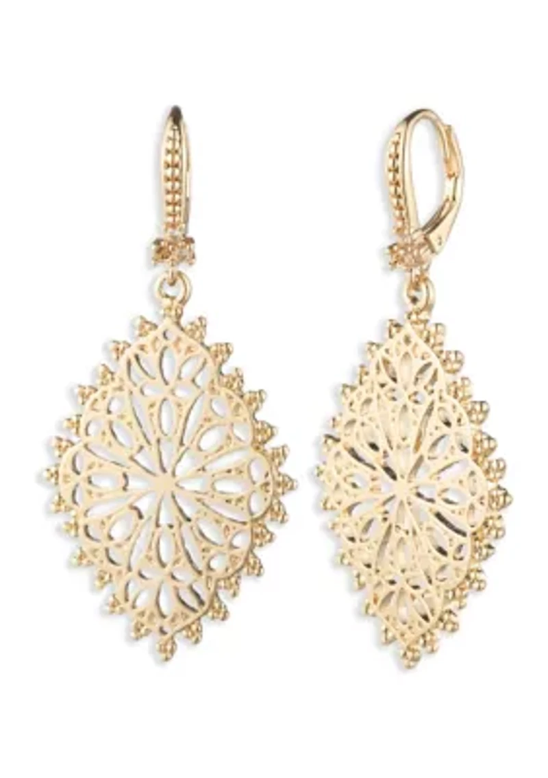 Elegant details and a unique design make these gorgeous gold-tone earrings from Marchesa a must-have for your next event. Lever back closure Polished finish Imported Product Specifications 2.05" L x 1" W Material & Care Gold-tone metal Clean with a soft cloth