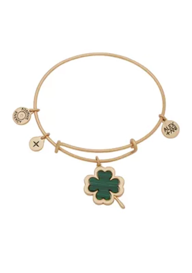 Gold Tone Green Luck Expandable Charm Bangle Bracelet
