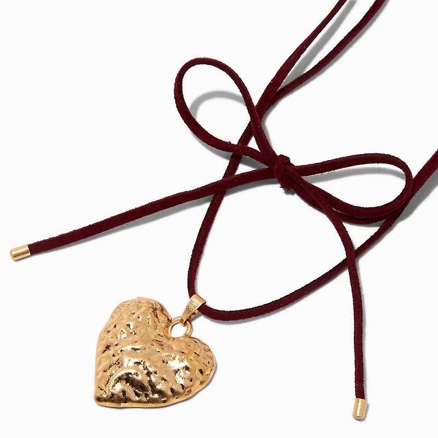 Gold Cord Textured Puffy Heart Pendant Necklace