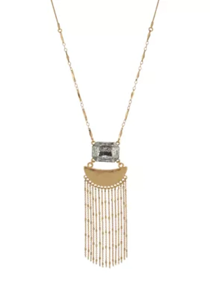 Gold Tone Long Rectangle Hematite Stone with Crescent Pendant on Chain with Tassel Necklace in Chattanooga, TN