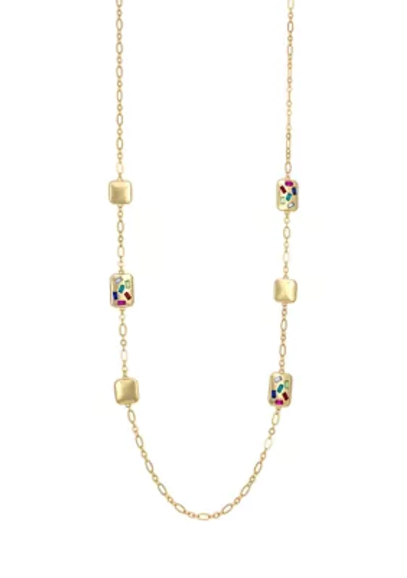 Gold Tone Multi Scattered Stone Station Illusion Necklace