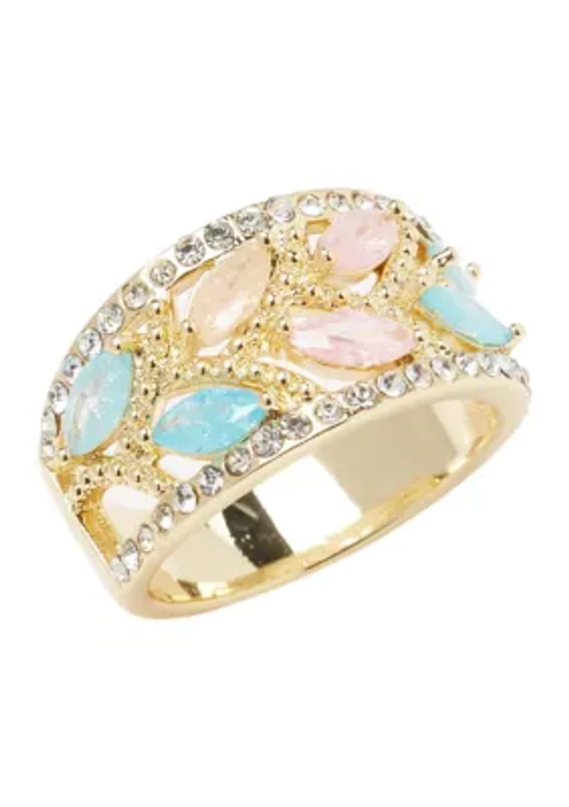 Gold Tone Opaque Marquise Multi Pavé Band Ring