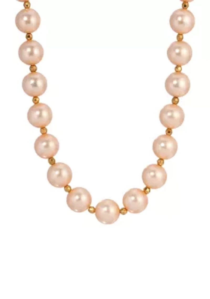 Gold Tone Peach Faux Pearl Beaded Necklace 15" Adj.